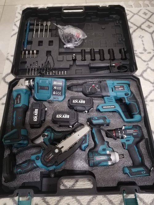Profesyoneller için geliştirilmiş 6 ürün bir arada ; 125mm Avuç Taşlama, Sds Plus Kırıcı Delici Hilti, Somun Sıkma Sökme, Vidalama Matkap, otomatik yağlamalı 15cm pala Dal budama testeresi, 30mm budama makası