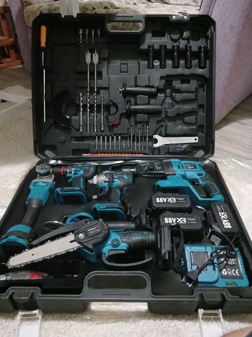 Profesyoneller için geliştirilmiş 6 ürün bir arada ; 125mm Avuç Taşlama, Sds Plus Kırıcı Delici Hilti, Somun Sıkma Sökme, Vidalama Matkap, otomatik yağlamalı 15cm pala Dal budama testeresi, 30mm budama makası