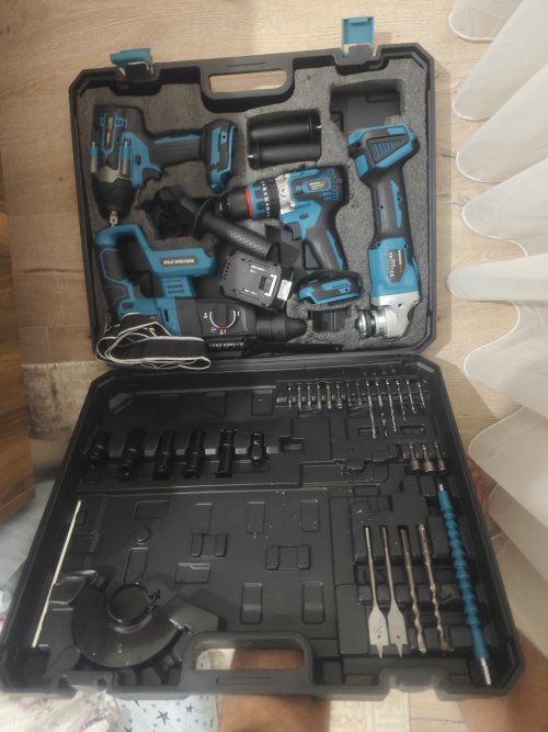 Parçalar :1 adet makine kutusu, 1 adet somun sıkma , 1 adet taşlama , 1 adet hilti, 1 adet vidalama matkap, 1 adet powerbanklı led aydınlatma, 3 adet batarya , 1 adet şarj cihazı , Ek Parçalar