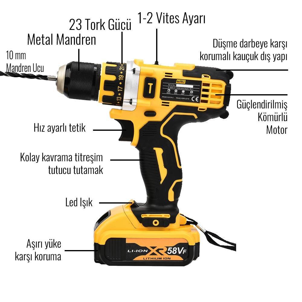 58vf 5ah matkabın boştaki devir sayısı 2000 dev/dk. 58vf 5ah matkabın delme modu var.